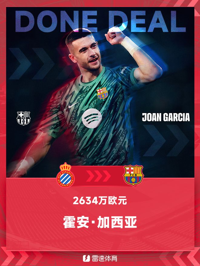 官方:巴萨签下西班牙人门将霍安·加西亚,解约金2634万欧